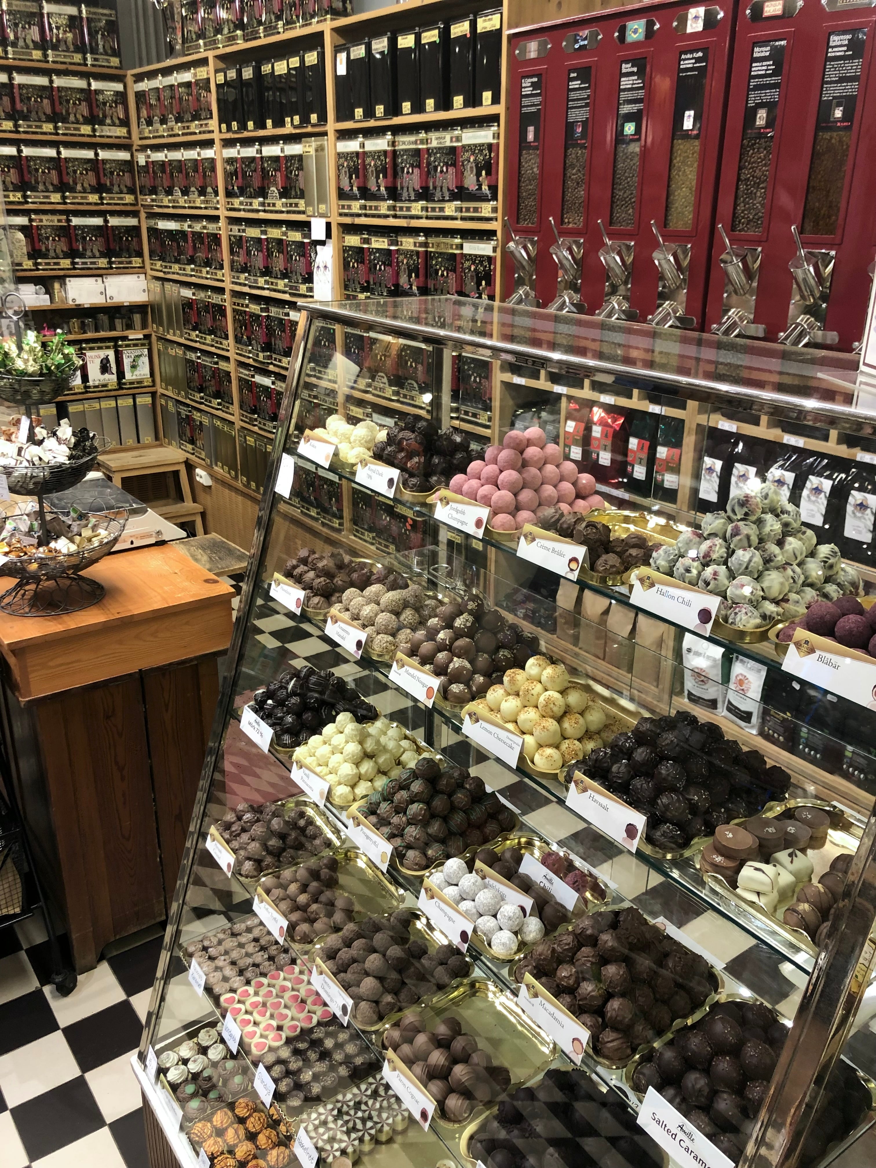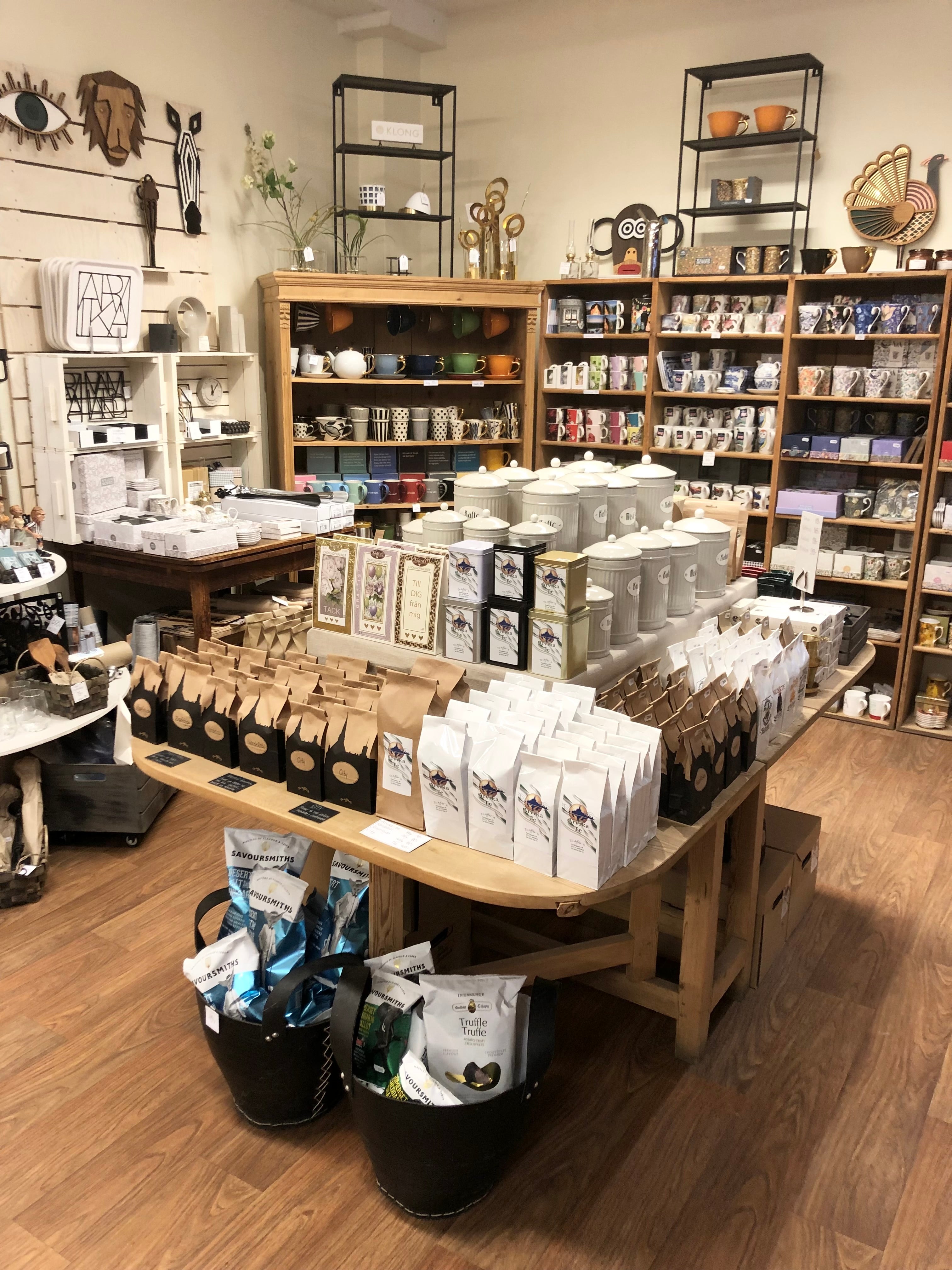 Ett stort utbud av te, kaffe, konfekt och delikatesser samt presenter från välkända varumärken