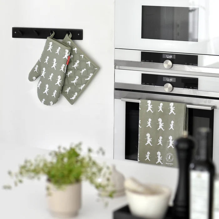 Vadderad Grytvante i 100% bomull. Repeterande mönster med avbildning av den klassiska Solstickepojken som skapades av Einar Nerman 1936.