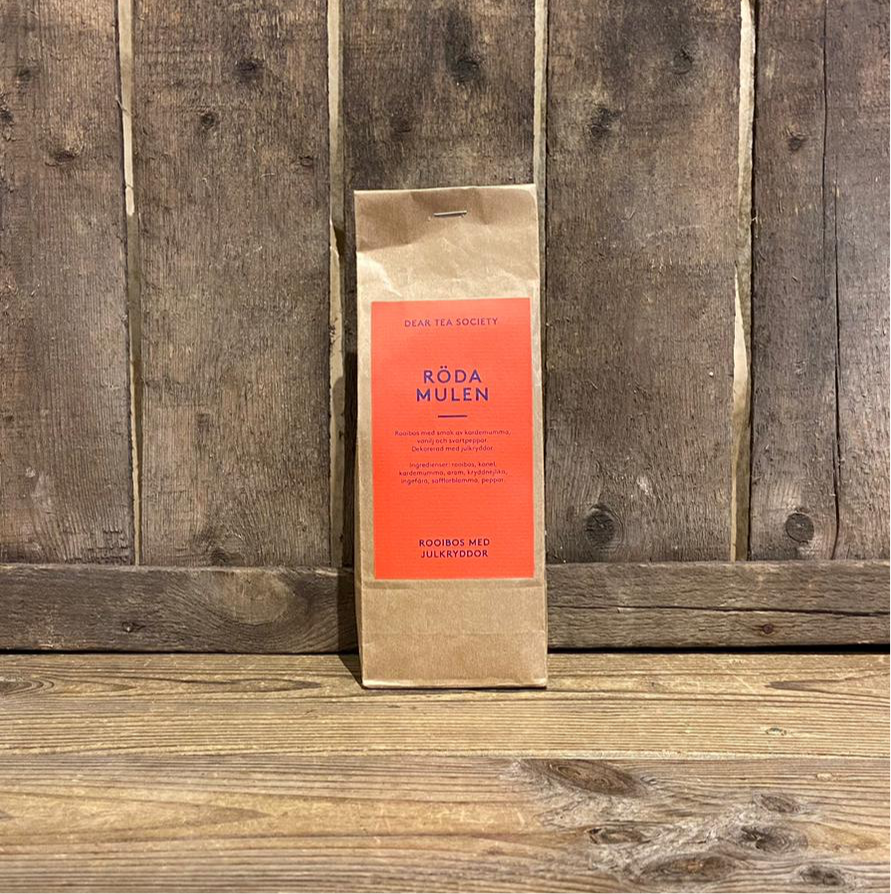 Rooibos från Sydafrika, kanel, kardemumma, arom, kryddnejlika, ingefära, safflorblomma, peppar