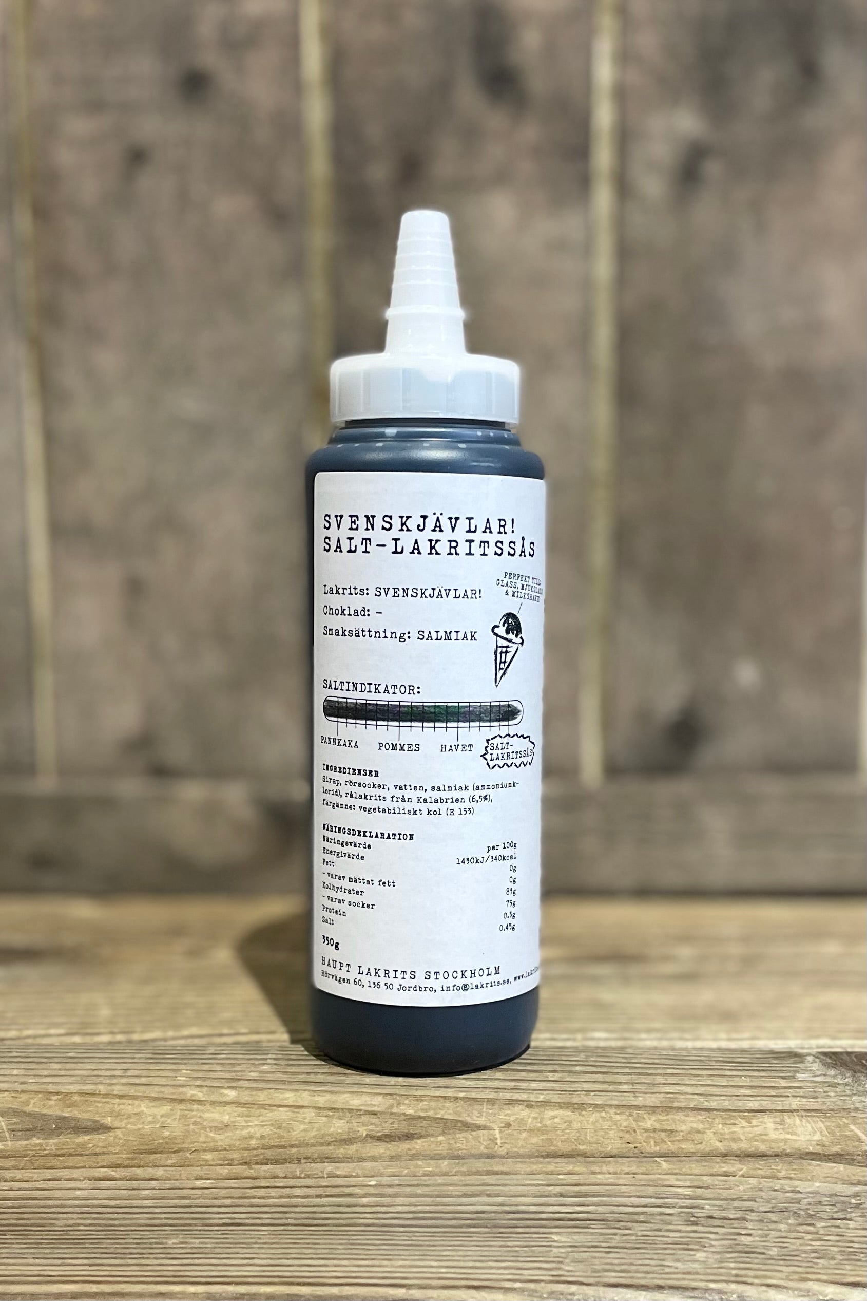 Sirap, rörsocker, vatten, salmiak (ammoniumklorid), rålakrits från Kalabrien 6,5%, färgämne: vegetabiliskt kol (E153)