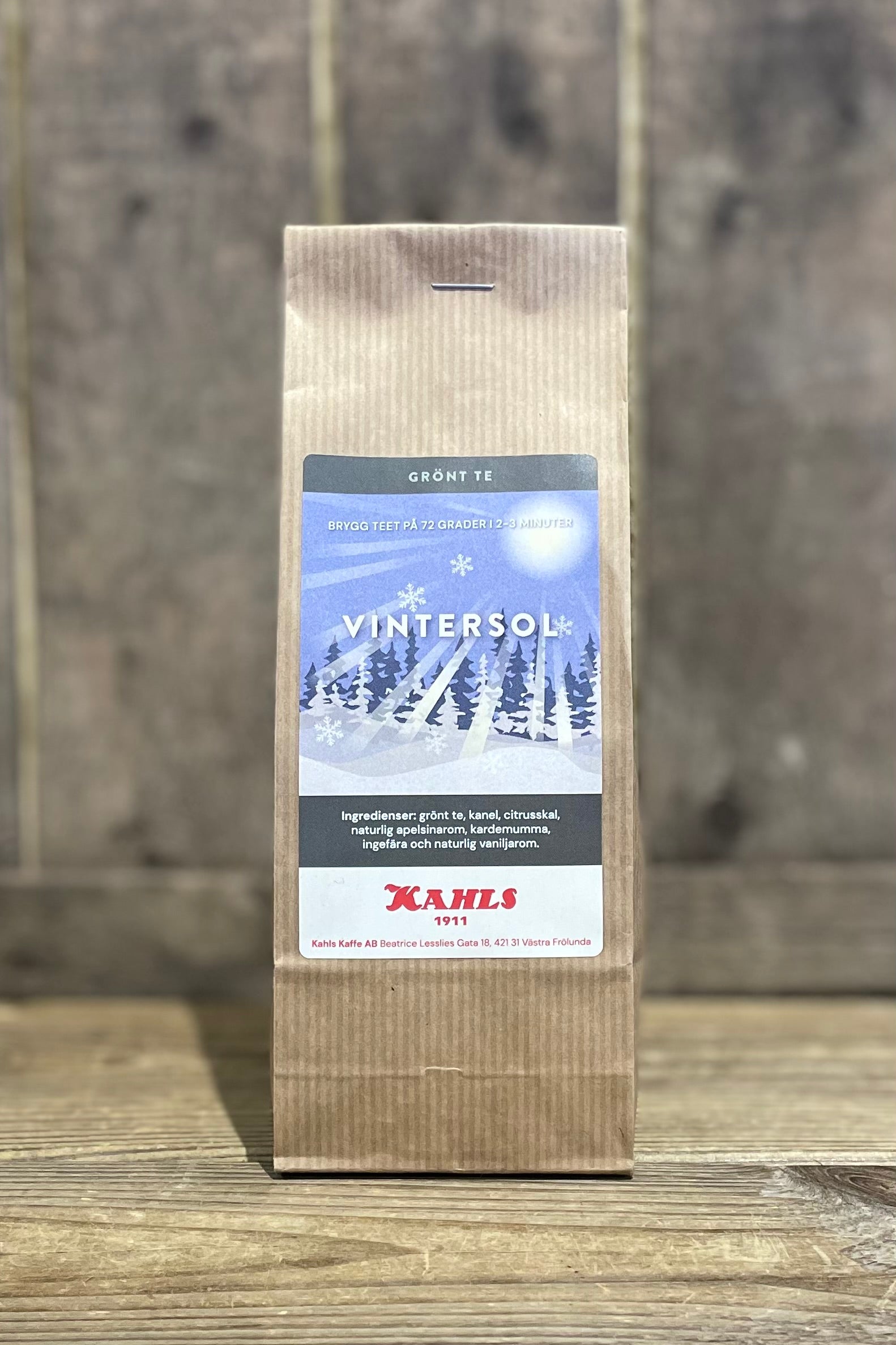 Grönt te, kanel, citrusskal, naturlig apelsinarom, kardemumma, ingefära och naturlig vaniljarom.